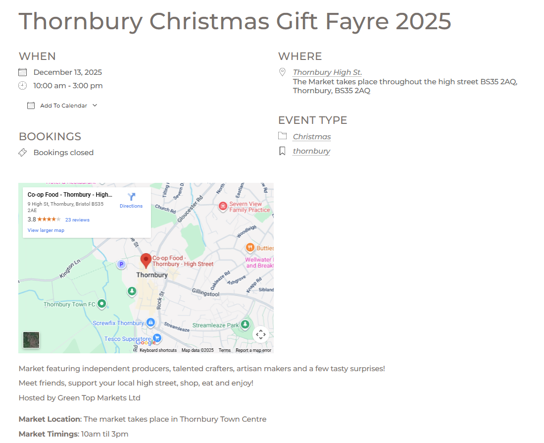 St. Mary's Church Hall, Thornbury Rotary Club Christmas Market - Saturday 29th November